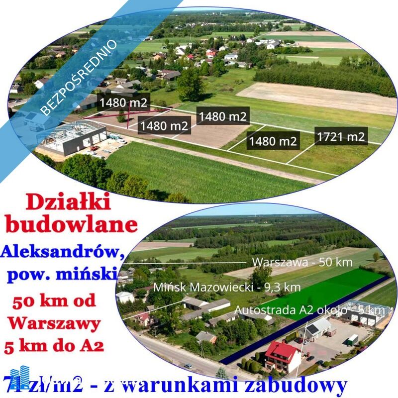 Działki z warunkami zabudowy – Aleksandrów, gm. Jakubów (pow. miński)Tylko 30 minut samochodem od Warszawy